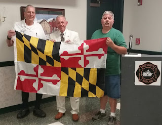The Westminster Vol. Fire Dept. was honored to have Del. Haven Shoemaker to take the time out of his busy schedule to visit the July monthly meeting and present the department with a new Maryland state flag.